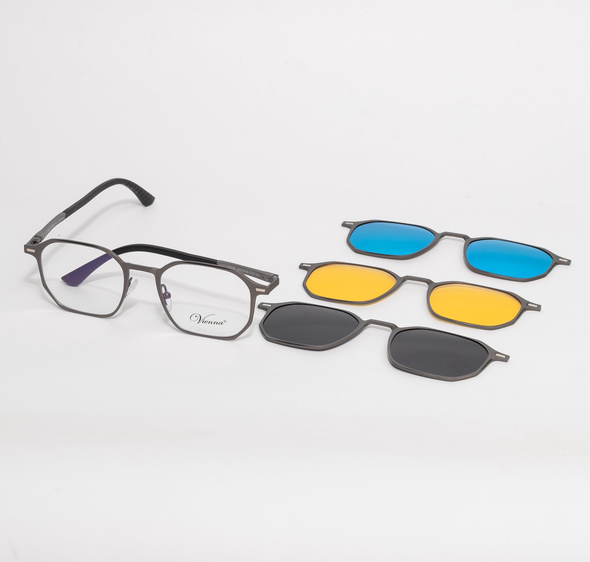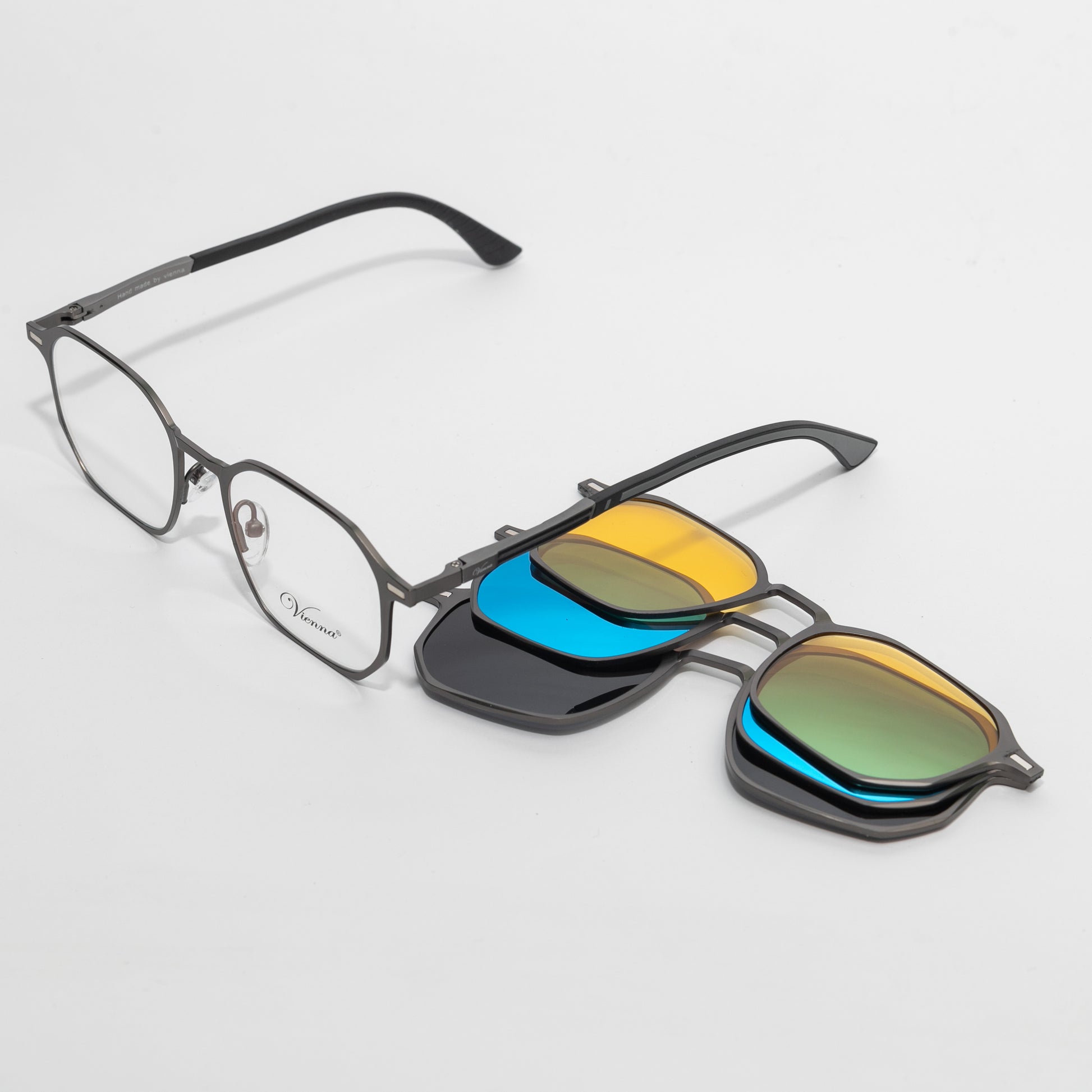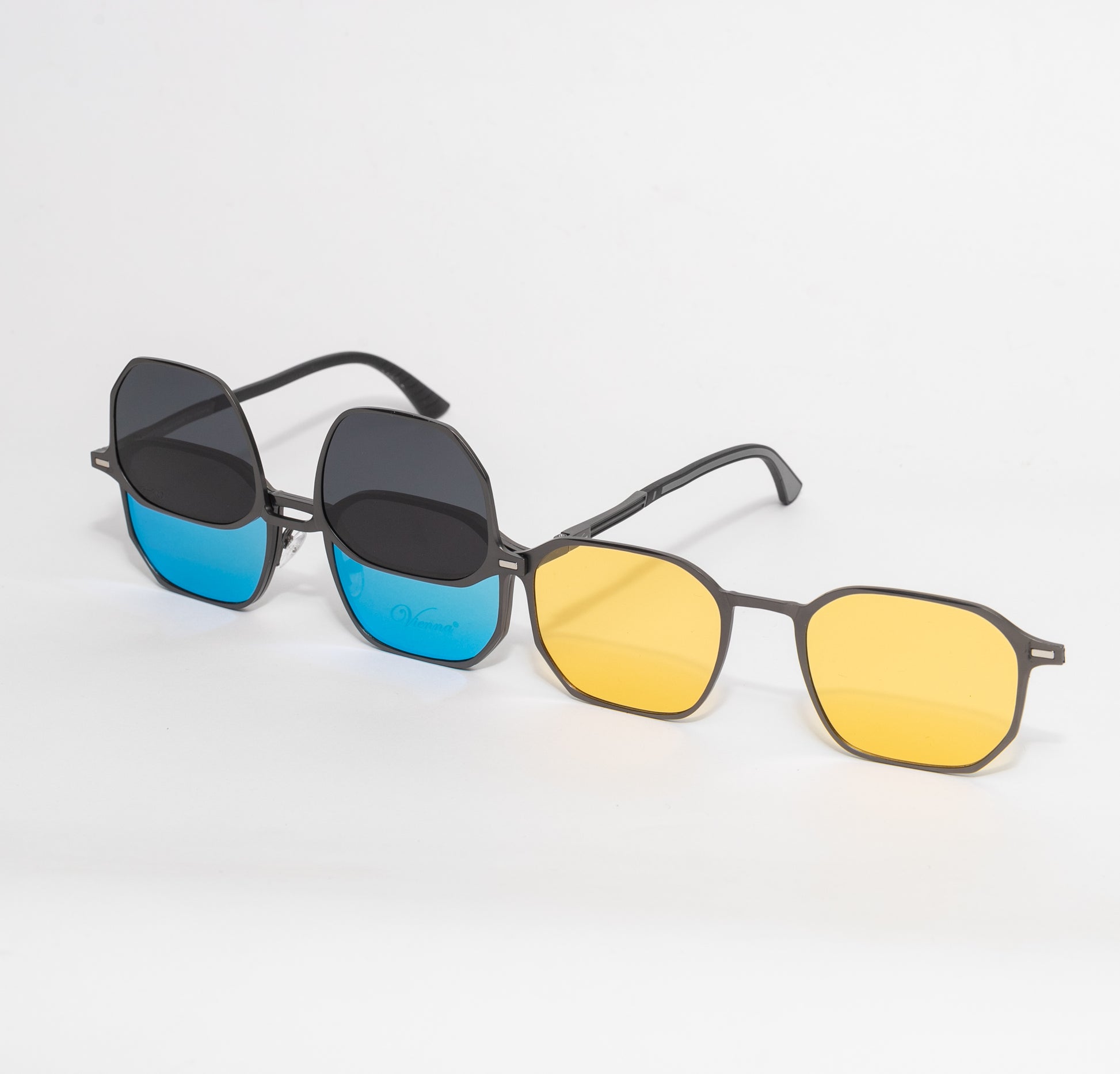 Versatile eyewear crafted from premium stainless steel that ensures durability and resists discoloration over time. Designed with a lightweight yet sturdy frame for maximum comfort and long-lasting wear. Comes with interchangeable polarized clip-on lenses that reduce glare, enhance clarity, and provide full UV protection — making it the perfect choice for both indoor and outdoor use.